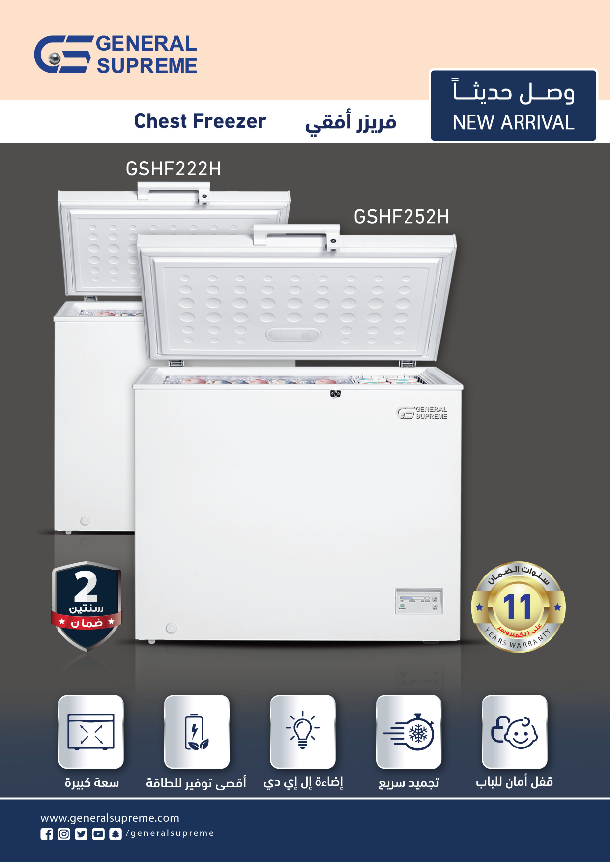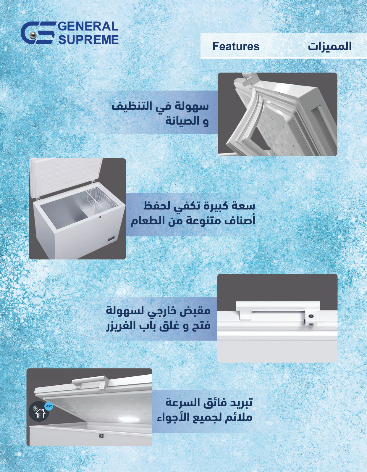 • كفاءة الطاقة: جنرال سوبريم فريزر موفر للطاقة مع أداء تبريد ممتاز.