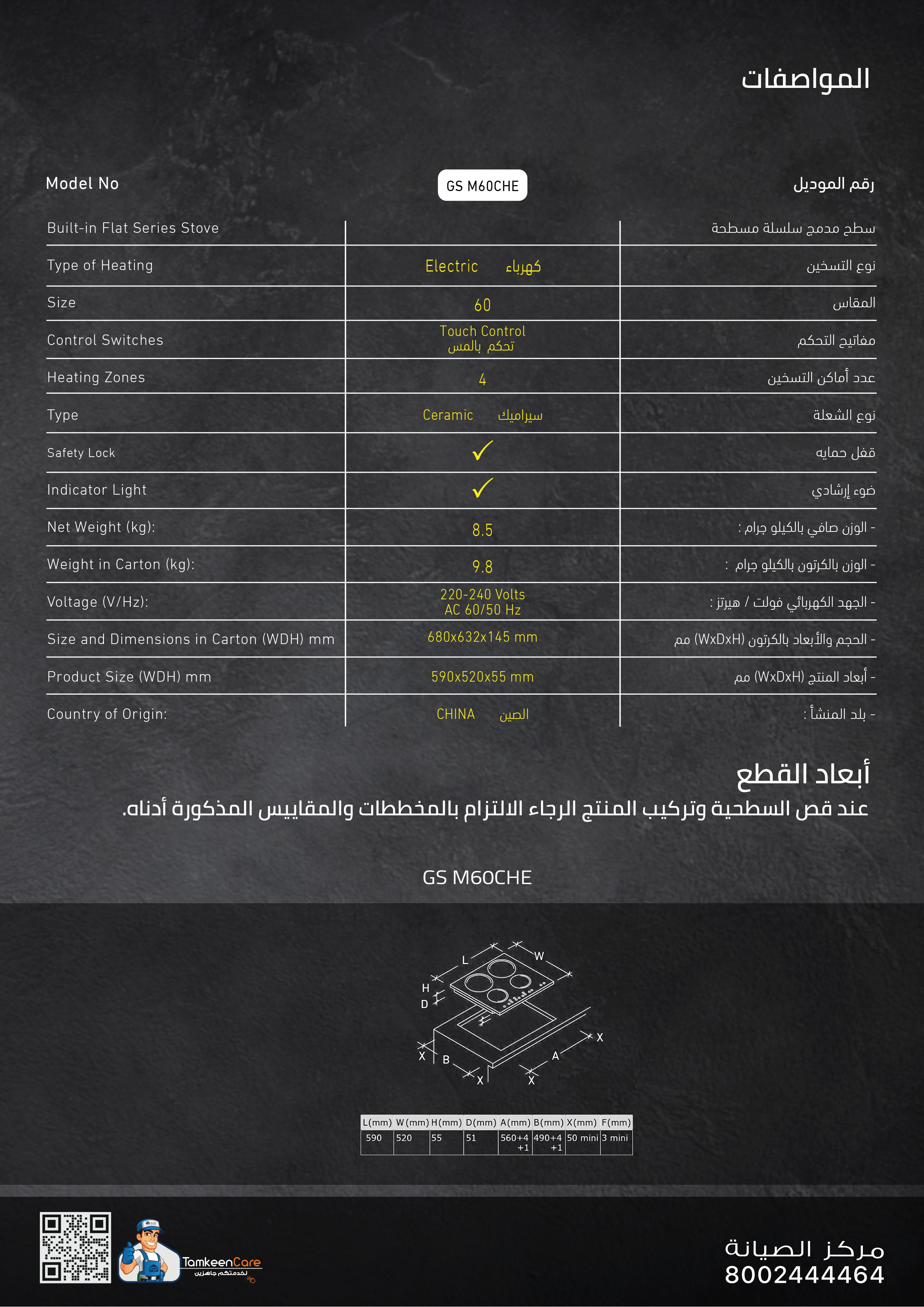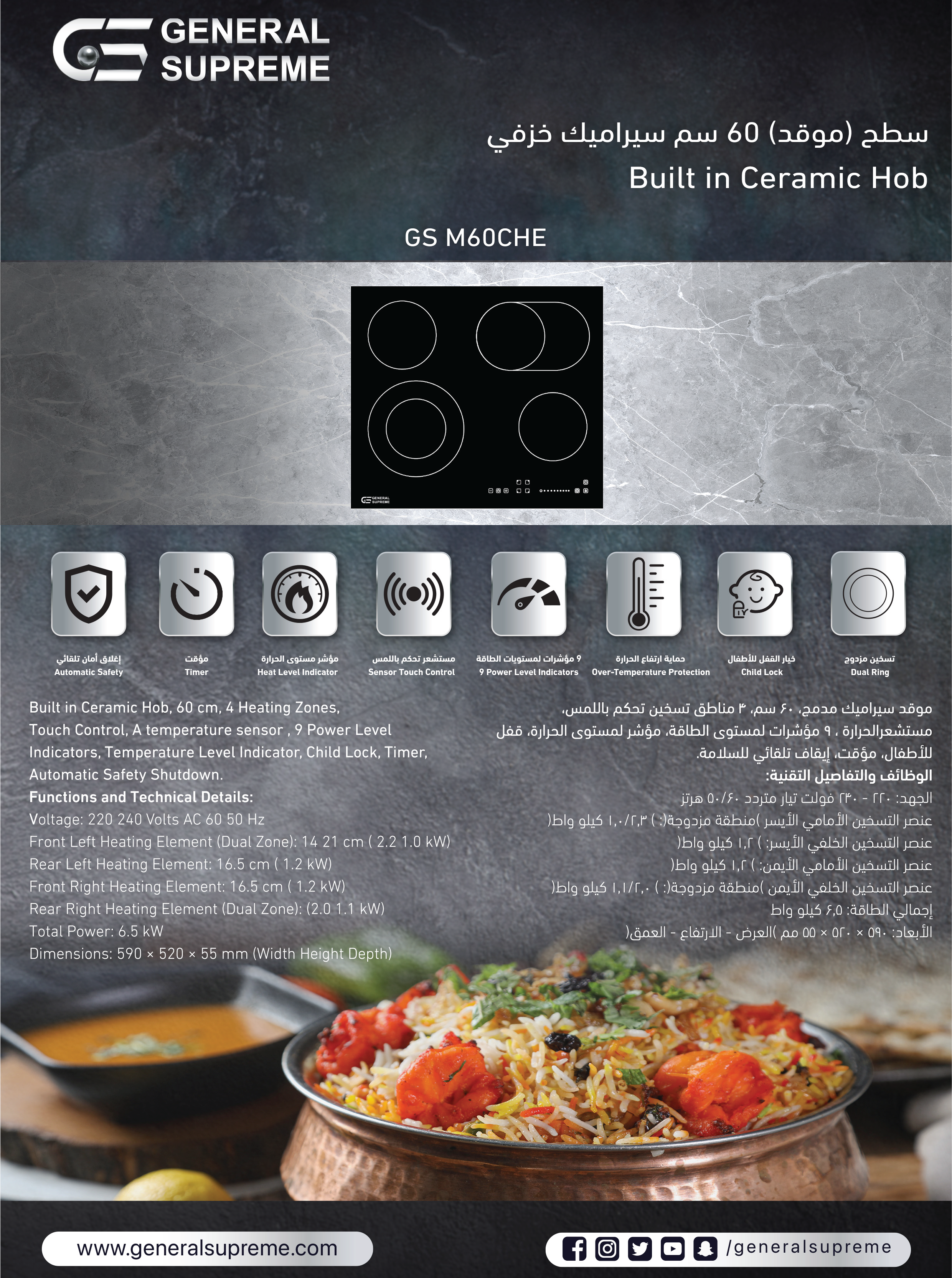 جنرال سوبريم – سطح سيراميك أجهزة بلت ان 60 سم | تصميم عصري وأداء فعال