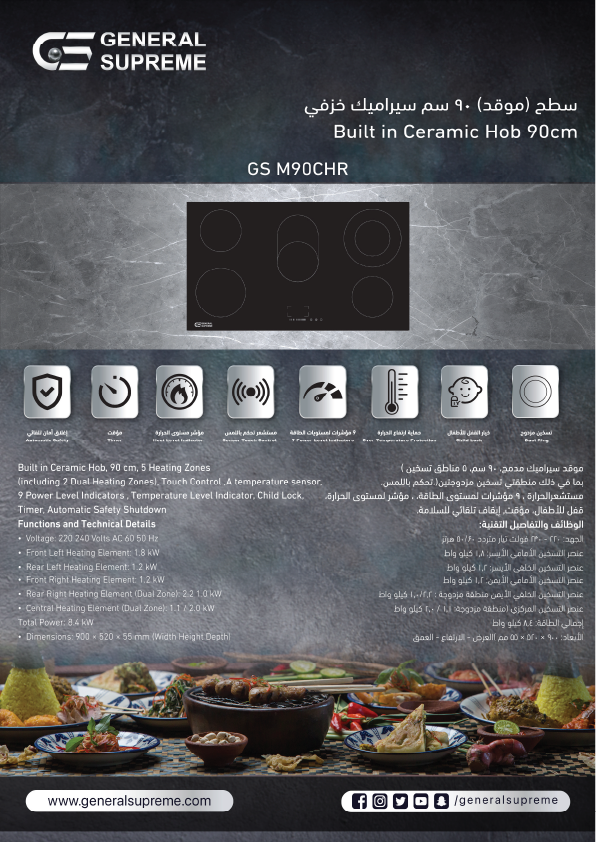 - يحتوي على نظام حماية من الحرارة الزائدة لكل منطقة تسخين.
