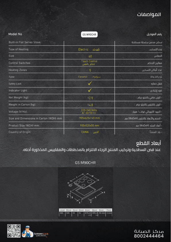 - سطح سيراميك أسود مقاوم للحرارة والخدوش لتوفير متانة طويلة الأمد.