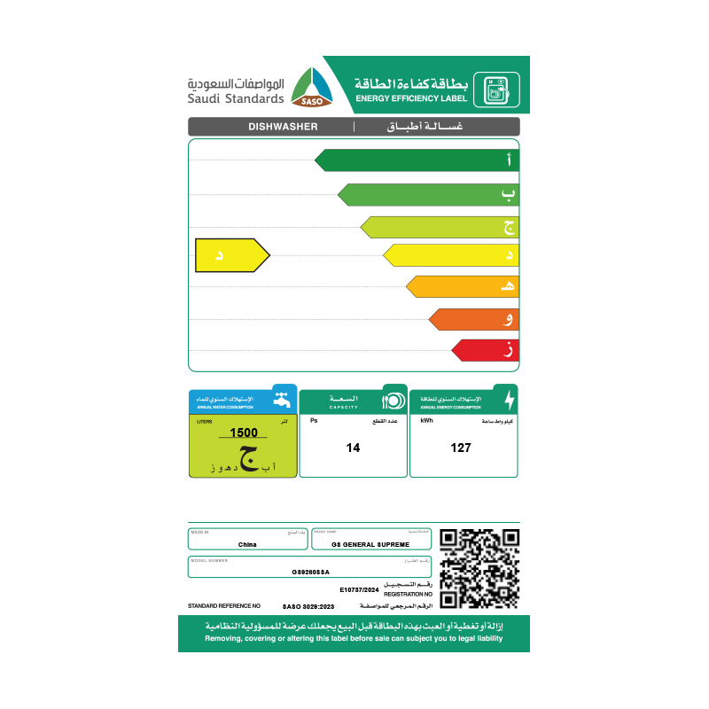 ج: نعم، يمكنك أثناء تجربة غسالة صحون جنرال سوبريم اختيار وضع نصف التحميل لتوفير الطاقة والمياه.
