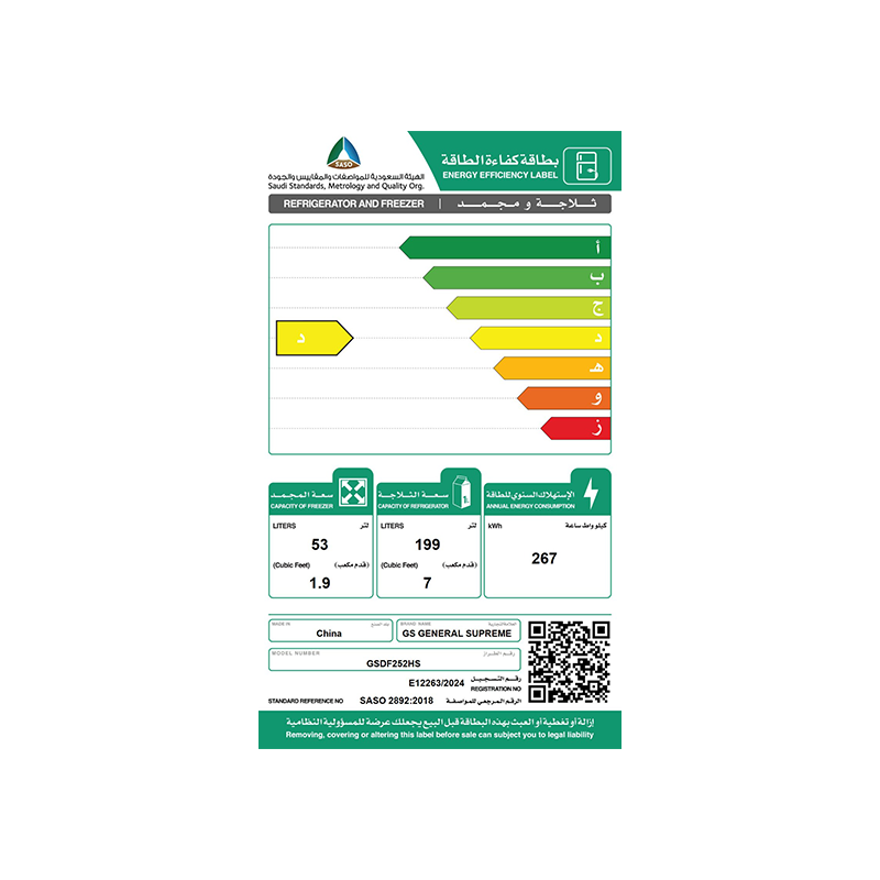 • تأكد من أن سعة 252 لتر مناسبة لاستخدامك اليومي.