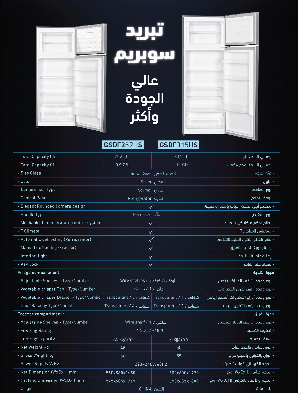 مميزات ثلاجة بابين مع فريزر جنرال سوبريم: