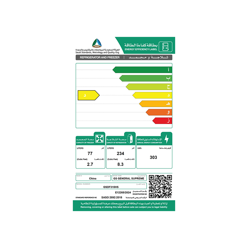 - ضمان من جنرال سوبريم: يضمن الجودة العالية وطول العمر التشغيلي.