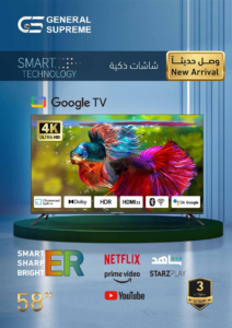 نعم، جنرال سوبريم شاشة تدعم أغلب التطبيقات الشهيرة عبر Google TV.