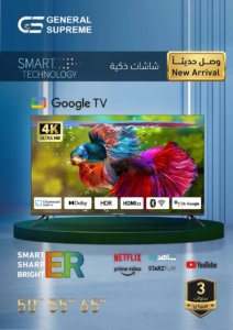 اسم المنتج جنرال سوبريم شاشة 65 بوصه، فائقة الدقة، سمارت جوجل تي في