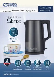 جنرال سوبريم غلاية كهربائية سعة 1.7 لتر 1800-2150 واط ستيل اسود