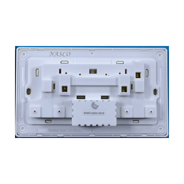 مميزات فيش مزدوج 13 أمبير + شاحن 7×14 أبيض من ناسكو
