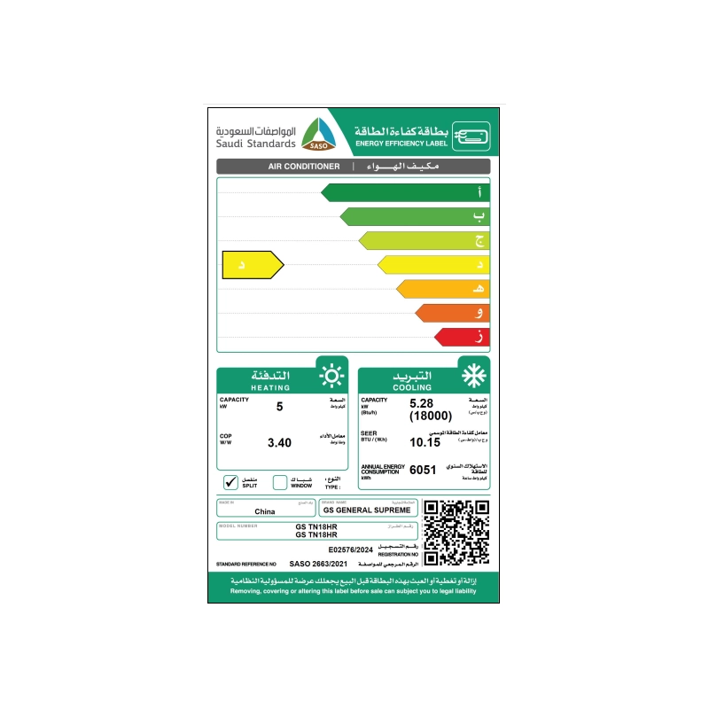 - أداء قوي وكفاءة عالية في التبريد والتدفئة.