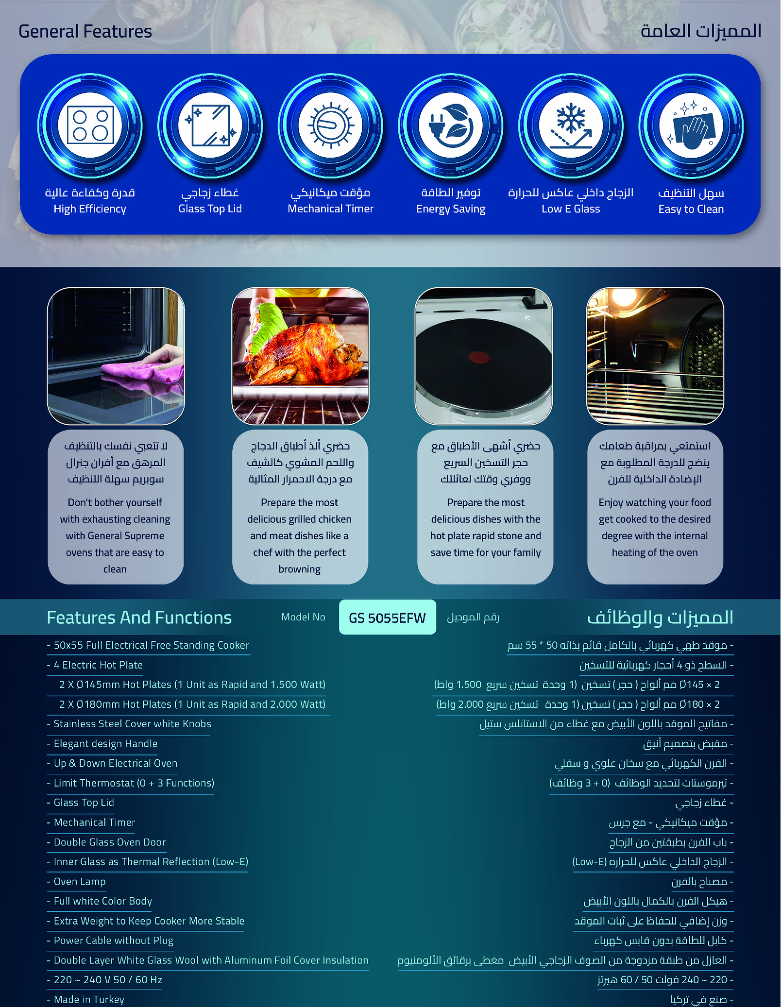 - مؤشرات حرارة لكل عين لتوفير أمان إضافي أثناء الطهي.