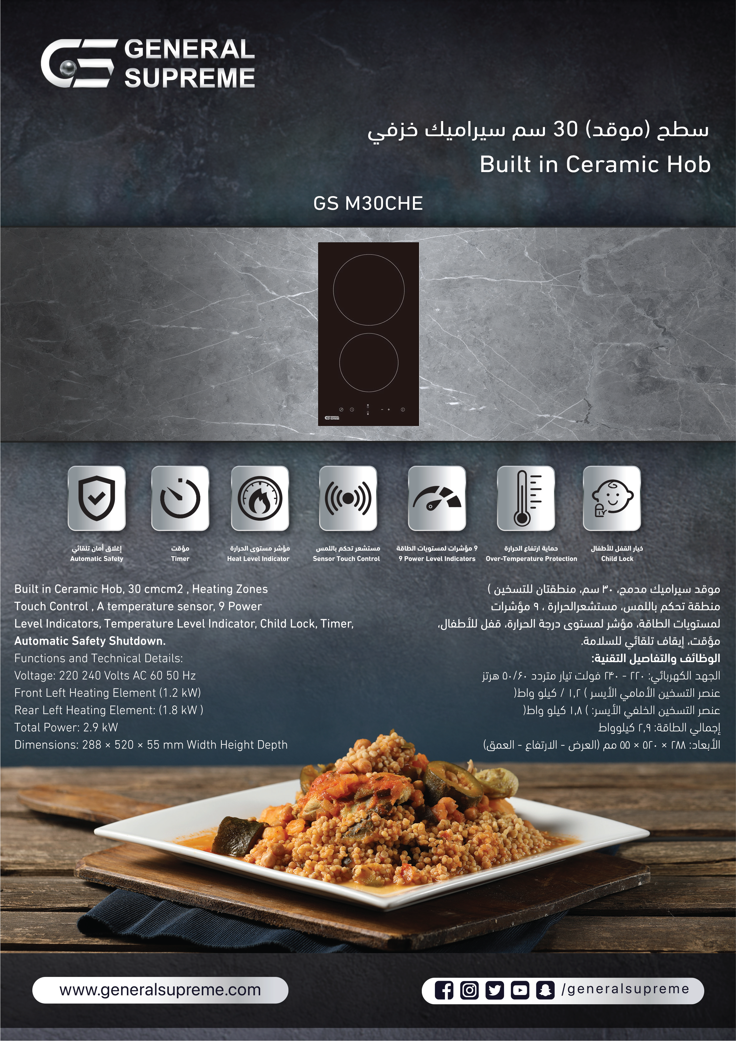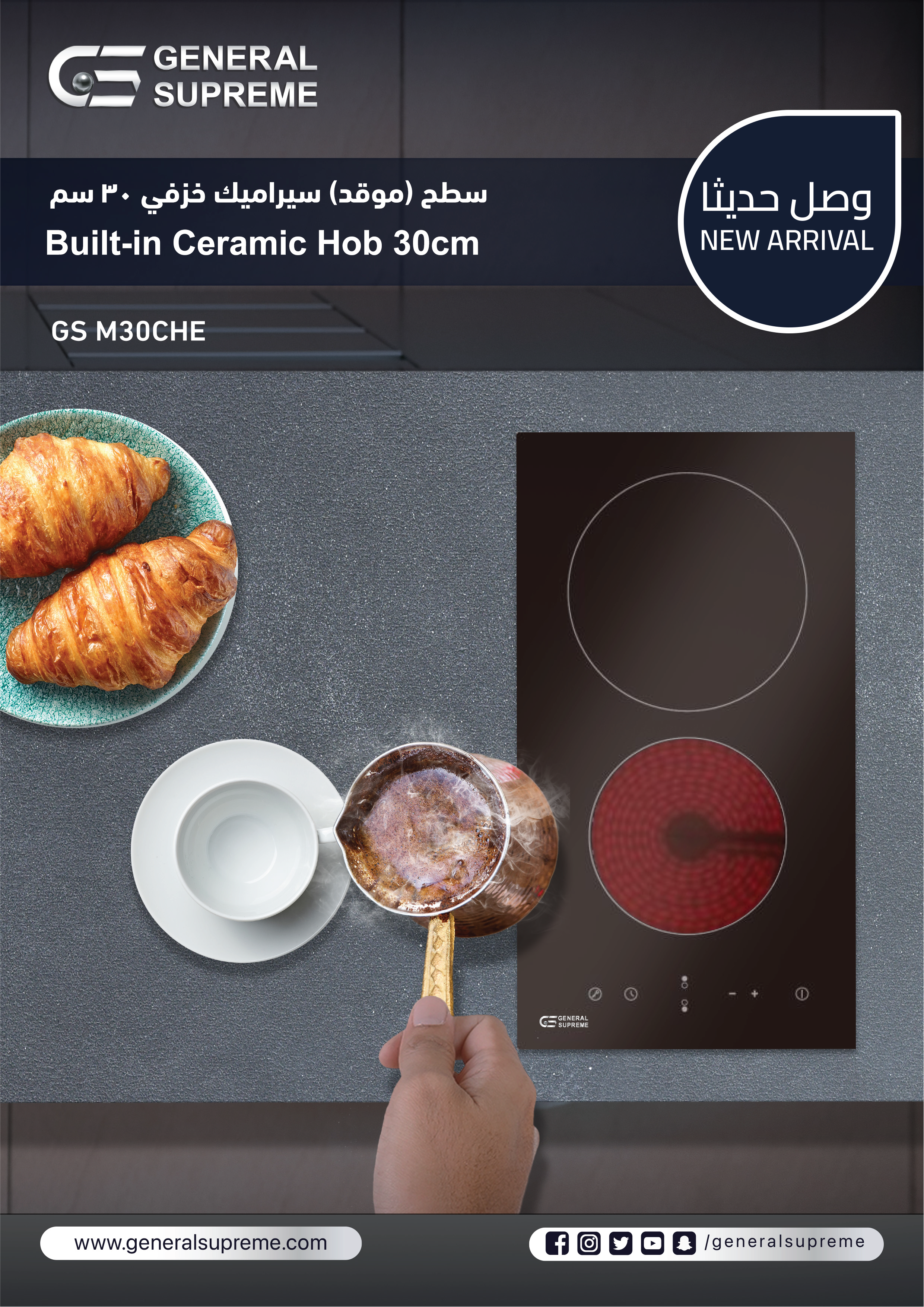 جنرال سوبريم – موقد غاز مسطح كهربائي بلت إن 30 سم | تصميم مدمج وأداء متطور